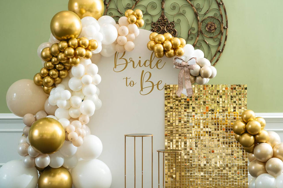 This project provides inspiration for party setups, including an outdoor wedding setup with chairs and draped pergola, a balloon arch and gold decorations for "Bride to Be," and woven hats and baskets on a floral wall backdrop. The images capture the creativity and elegance of various party arrangements.